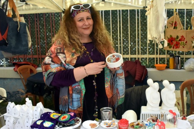 Kadınlar Günü Kermesinde stant açan Özlem Özkara aile bütçesine katkıda bulunmak için atölyeye çevirdiği evinin bir bölümünde çalışmalarını ürettiğini söyledi.