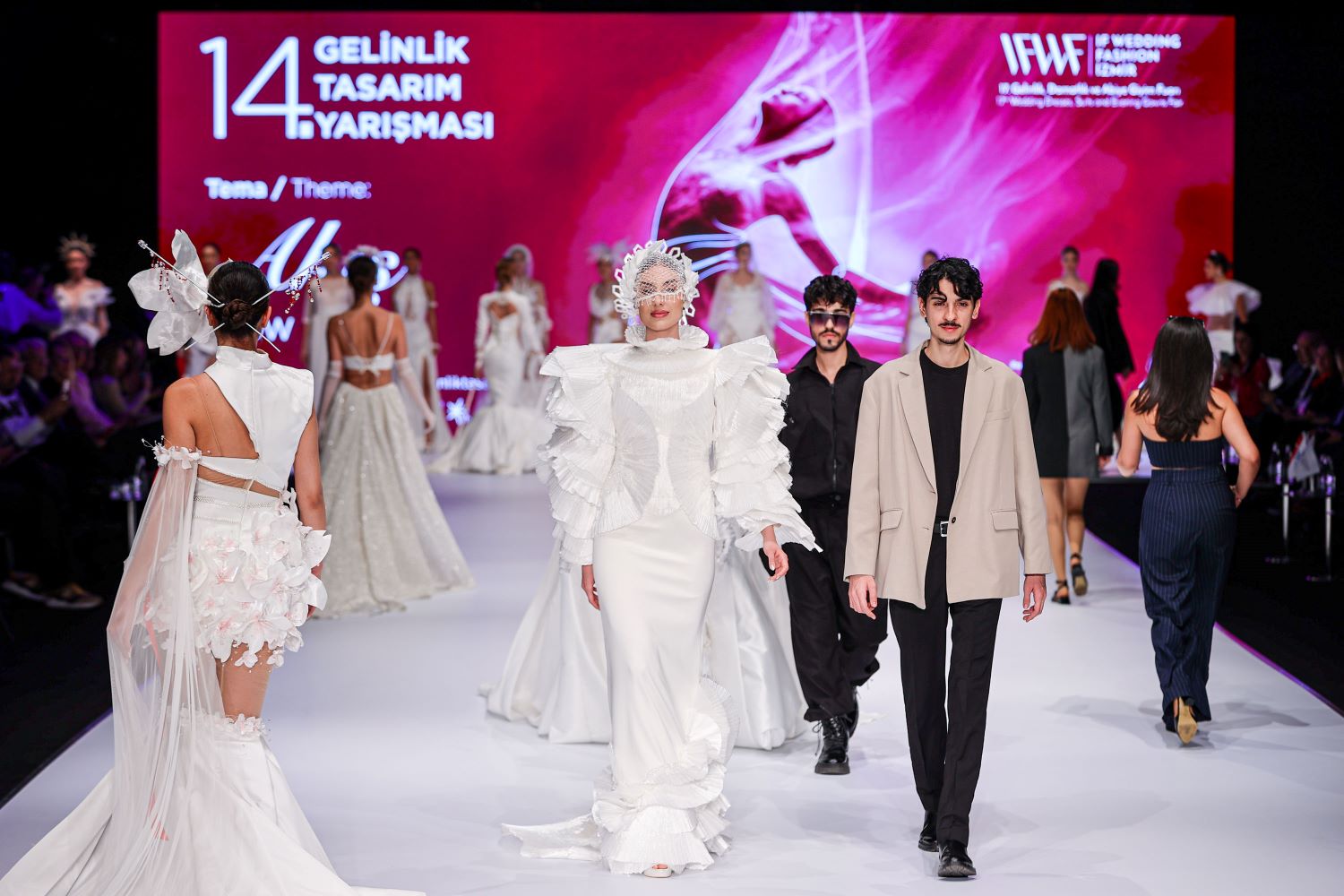 IF Wedding Fashion İzmir - Gelinlik, Damatlık ve Abiye Giyim Fuarı, 17. kez kapılarını açtı. İzmir Büyükşehir Belediyesinin ev sahipliğinde İZFAŞ tarafından Ege Giyim Sanayicileri Derneği partnerliğinde düzenlenen fuarda, Türkiye’nin 11 şehrinden ve yedi ülkeden abiye giyim, gelinlik, damatlık, aksesuar ile çocuk giyim ürün gruplarından 228 katılımcı yer alıyor. Fuarın, binlerce yerli profesyonel ziyaretçinin yanı sıra farklı ülkelerden 5 bine yakın yabancı ziyaretçiye de ev sahipliği yapması bekleniyor. Fuar boyunca pek çok defile de gerçekleştiriliyor. IF Wedding Fashion İzmir, ilk gününde, birbirinden şık tasarımların kendine yer bulduğu defilelerle bir moda şovuna dönüştü. IF Wedding Fashion İzmir’de, 2024 modasına yön verecek tasarımlar ilk kez görücüye çıktı. Birbirinden güzel gelinlik, damatlık ve abiye modellerinin sergilendiği tasarımlar, fuarizmir’de özel olarak oluşturulan defile alanında sektör profesyonellerinin beğenisine sunuldu.